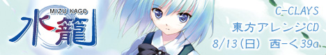 ■水籠 〜MIZU KAGO〜 ■東方プロジェクト・アレンジ音楽 ■8cmCDプレス(17分38秒) ■8/13(日) ■COMIC MARKET 70 ■委託先 / D.O.R様 西-く39a ■特典/ 植田亮氏、書き下ろしポストカード ■価格 / \ 300 ※東方プロジェクトは上海アリス幻樂団様の作品です。