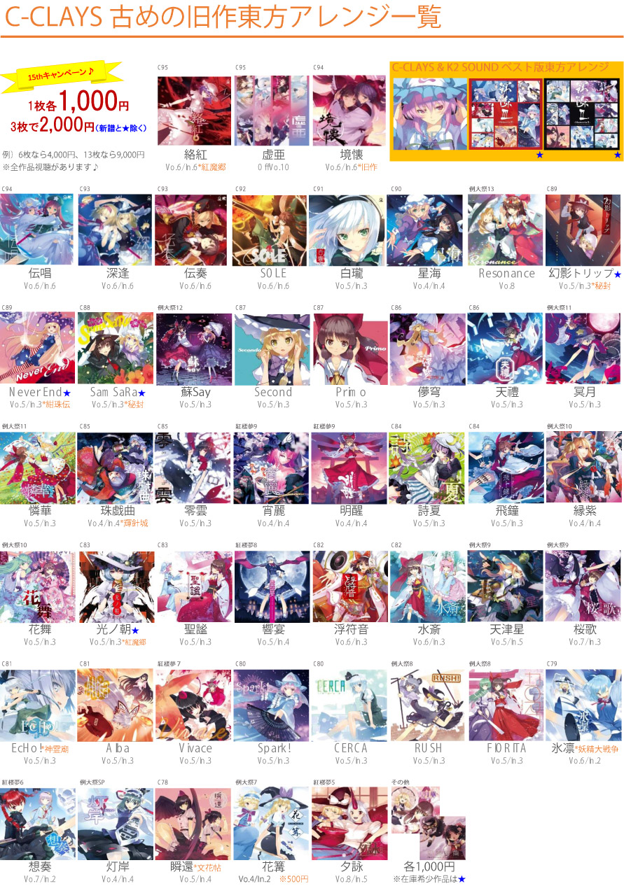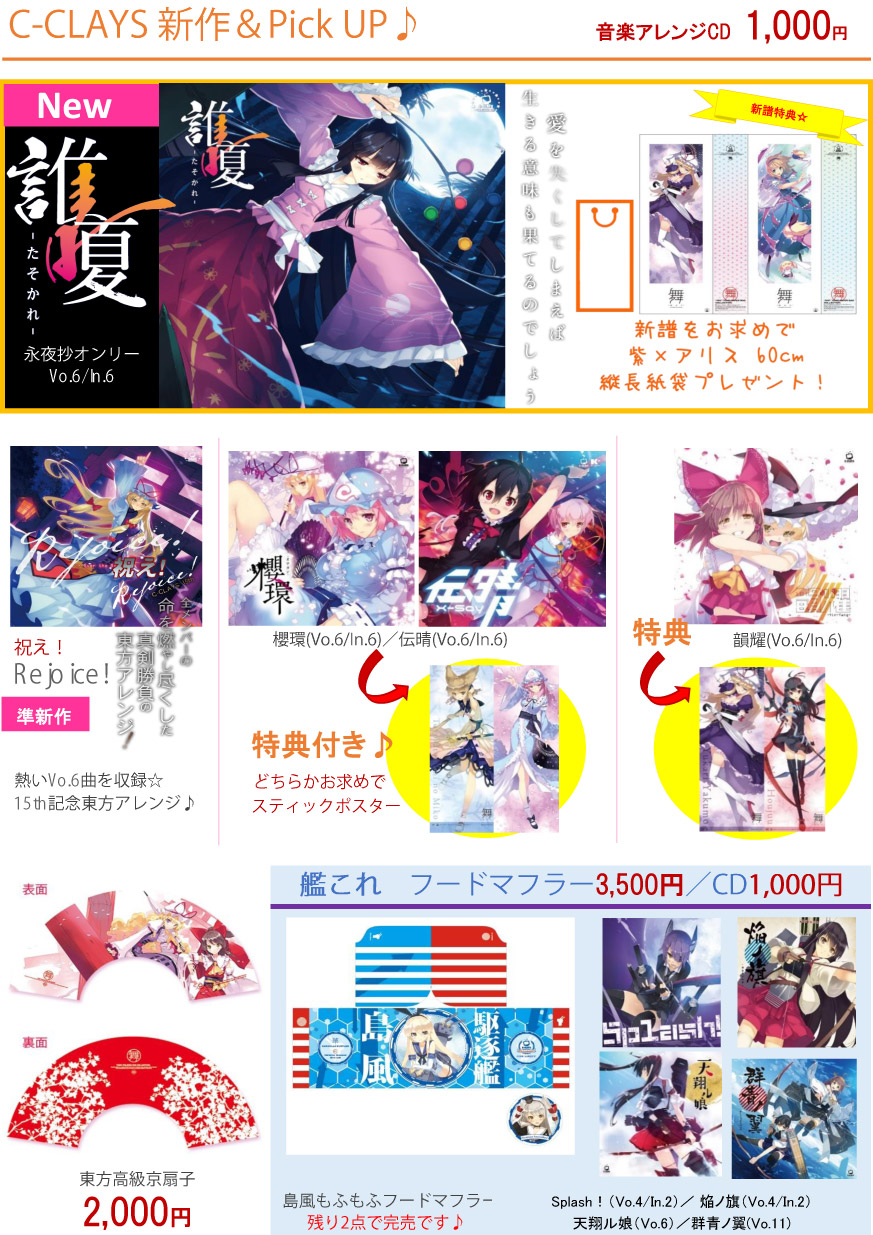 3112月 2019 投稿者 C-CLAYS & K2 SOUND コメントはまだありません 取り急ぎ本日C97 C-CLAYS メニュー表です! 本日12/31 南館4ホールの<南ナ17>にぜひ遊びにきてくださいね☆ >PDF版はこちら(1Mくらい) イベント・ライブの詳細ご来場のご案内 イベント名 コミックマーケット97(C97) イベント開催日 2019-12-31 イベント会場 東京ビッグサイト サークルスペース 4日目 南ナ-17ab イベント詳細情報 公式HPをご覧ください おすすめの関連作品&記事 誰嗄 -たそかれ- C-CLAYS & K2 SOUND 全作品一覧 コメントを残す