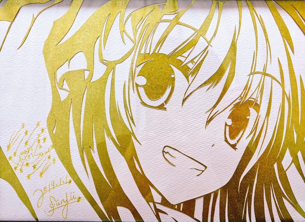 写真に撮れば反射が映り込んでしまうくらいのキラキラの美しい切り絵をいただいてしまい…。